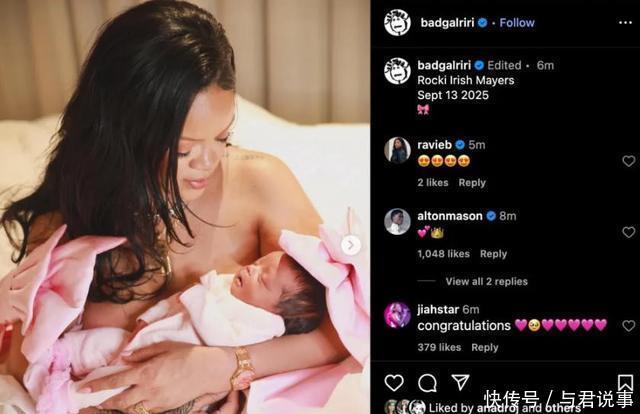 (蕾哈娜和女儿) 她在帖子里宣布, 女儿出生于今日,名字叫RockiIrishMayers, 跟两个儿子一样,名字都不走寻常路。
