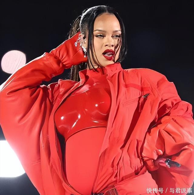 (今年妇女节那天,蕾哈娜分享了大儿子出生时的照片) 歇了不到一年,她就怀上二胎,还月的超级碗中场表演上,一身红衣大方秀出孕肚,很快上了热搜。